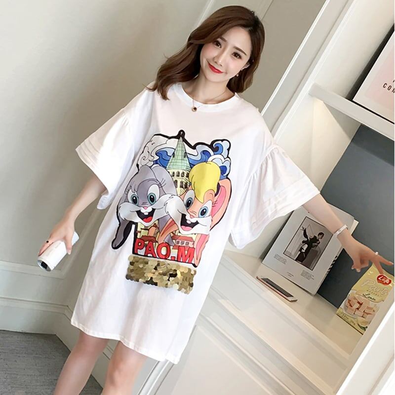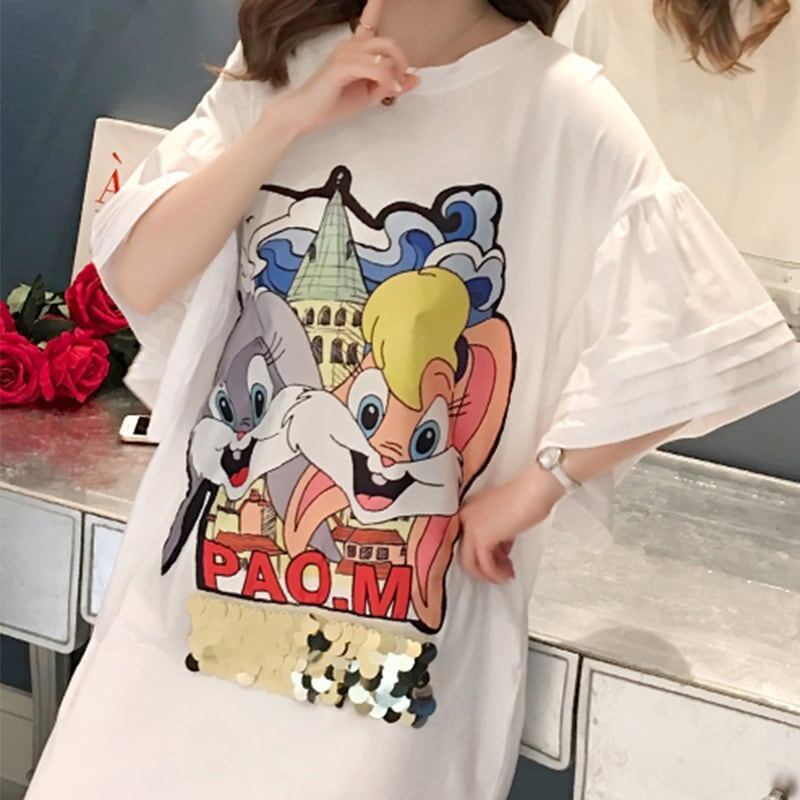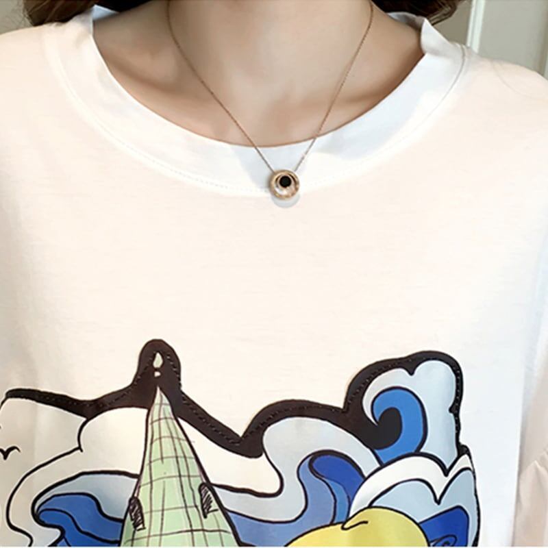 スタイリッシュ プリント Tシャツ 一目惚れ カットソー ワンピースGF1841