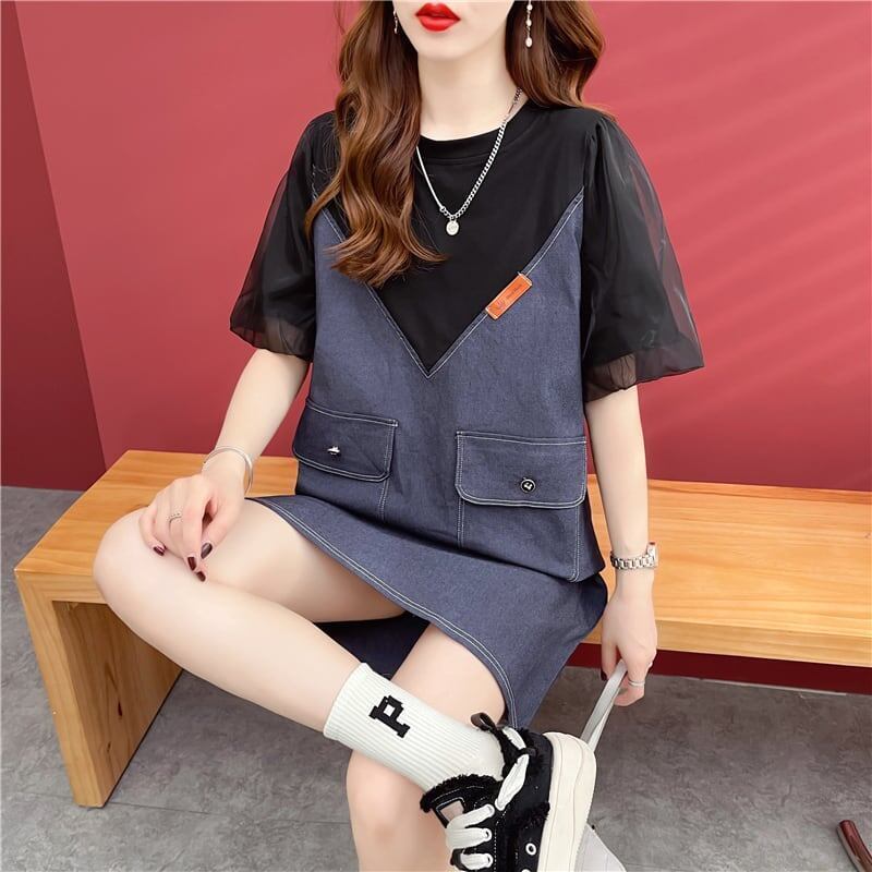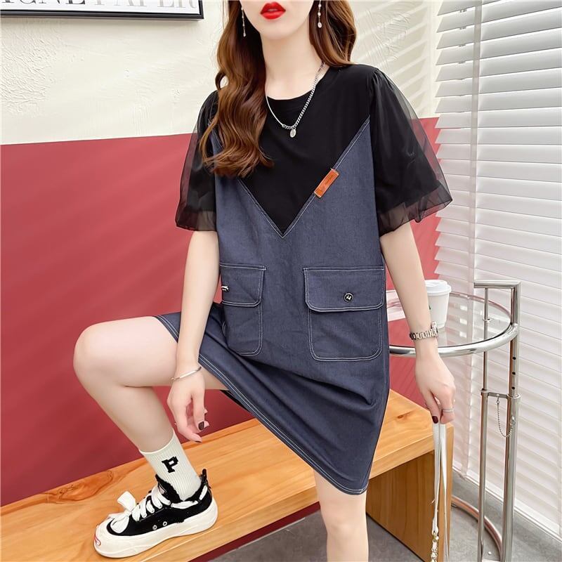 個性的なデザイン 切り替え 一目惚れ ラウンドネック ワンピースGF1843
