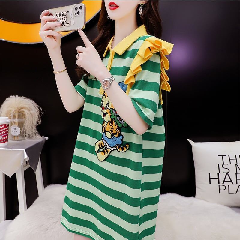 個性的なデザイン プリント Tシャツ オシャレ度満点 カットソー ワンピースGF1858