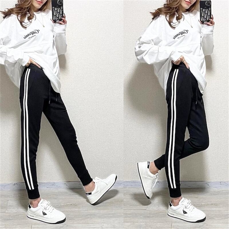 脚長効果 ストライプ柄 ボウタイ スポーツ シンプル カジュアルパンツ 大人カジュアル fashion ootd 夏コーデ ファッション coordinateコーディネート 夏服 カジュアルコーデ 今日のコーデ 大人コーデ レディースGF5547