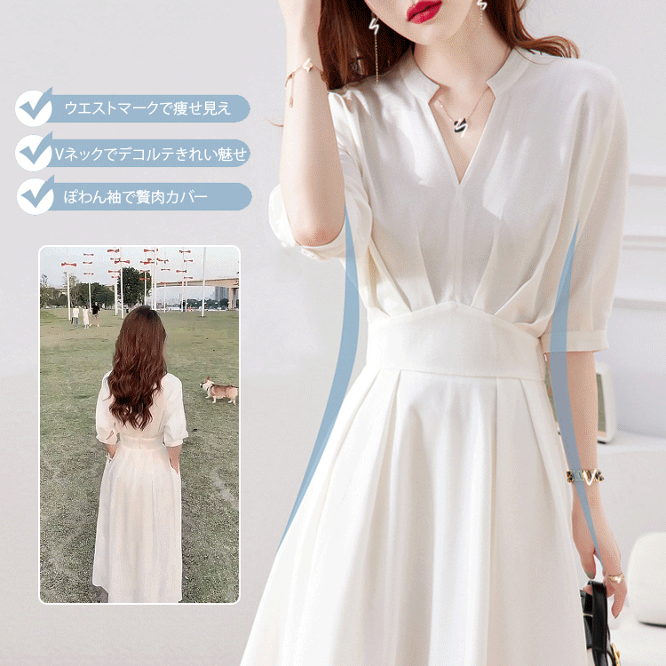 存在感抜群 シンプル 無地 五分袖 Vネック エレガントワンピース 大人カジュアル fashion ootd 夏コーデ ファッション coordinateコーディネート 夏服 カジュアルコーデ 今日のコーデ 大人コーデ レディースGF5563