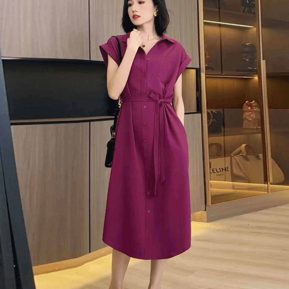 見逃し厳禁 シンプル ボウタイ 無地 ビックシルエット 半袖 折り襟 カジュアルワンピース 大人カジュアル fashion ootd 夏コーデ ファッション coordinateコーディネート 夏服 カジュアルコーデ 今日のコーデ 大人コーデ レディースGF5578