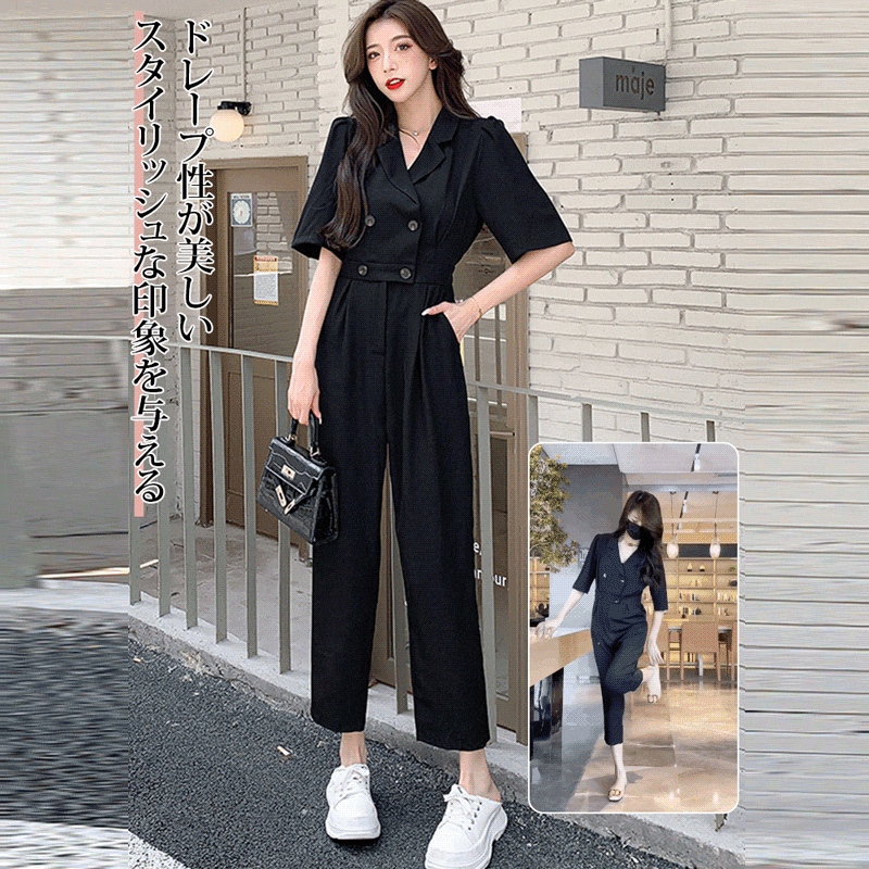 絶対流行 ファッション シンプル 無地 五分袖 折り襟 通勤/OL オールインワン 大人カジュアル fashion ootd 夏コーデ ファッション coordinateコーディネート 夏服 カジュアルコーデ 今日のコーデ 大人コーデ レディースGF5585