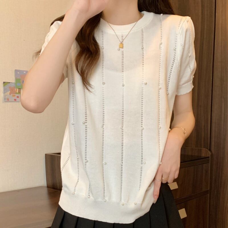 新品殺到 エレガント 半袖 ラウンドネック ビーズ Tシャツ 大人カジュアル fashion ootd 夏コーデ ファッション coordinateコーディネート 夏服 カジュアルコーデ 今日のコーデ 大人コーデ レディースGF5639