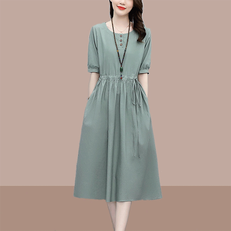 人気上昇中 シンプル ボタン ボウタイ 無地 五分袖 ラウンドネック エレガントワンピース 大人カジュアル fashion ootd 夏コーデ ファッション coordinateコーディネート 夏服 カジュアルコーデ 今日のコーデ 大人コーデ レディースGF6619