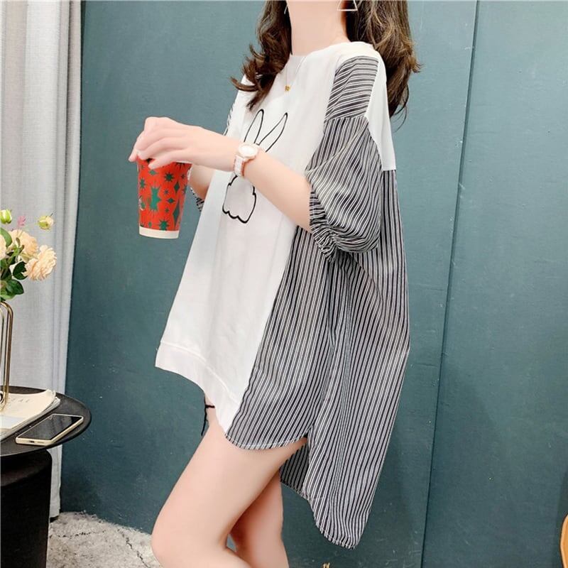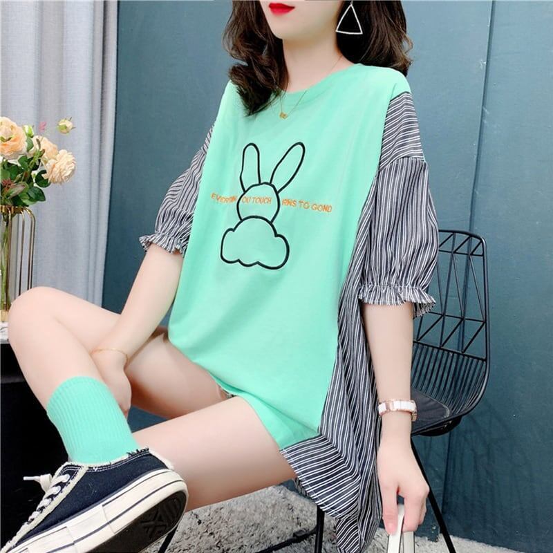 個性的なデザイン 切り替え 今季大好評 プリント Tシャツ カットソーGF1944