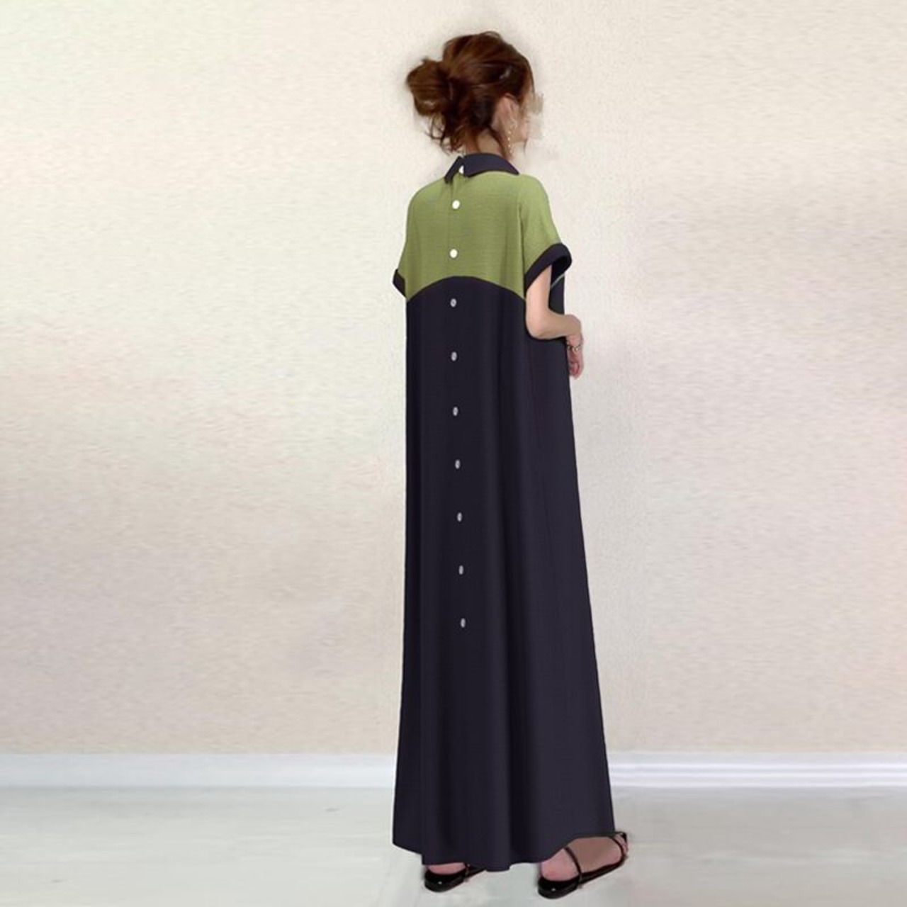 高見えデザイン ボタン ギャザー 配色 半袖 ボートネック カジュアルワンピース 大人カジュアル fashion ootd 夏コーデ ファッション coordinateコーディネート 夏服 カジュアルコーデ 今日のコーデ 大人コーデ レディースGF6861