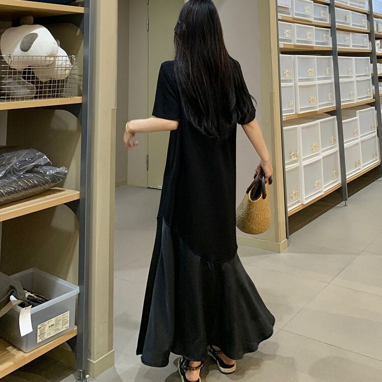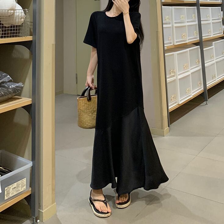 気質アップ シンプル 切り替え ラウンドネック 無地 半袖 Aライン カジュアルワンピース 大人カジュアル fashion ootd 夏コーデ ファッション coordinateコーディネート 夏服 カジュアルコーデ 今日のコーデ 大人コーデ レディースGF5809