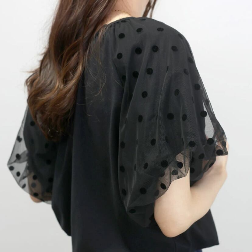 絶対可愛い ファッショナブル 上品なシルエット パフスリーブ 切り替え レース フェミニン Tシャツ 大人カジュアル fashion ootd 夏コーデ ファッション coordinateコーディネート 夏服 カジュアルコーデ 今日のコーデ 大人コーデ レディースGF5653