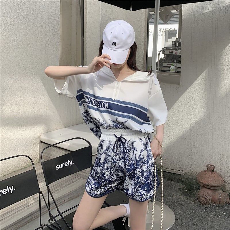 ファッション 切り替え カジュアル ブラウス+ショートパンツ セットアップGF1960