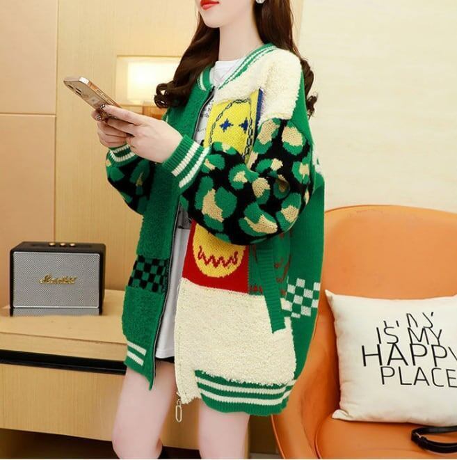 美感いっぱい ラウンドネック 好感度満載 カートゥーンプリント カーディガンGF1972