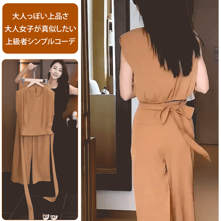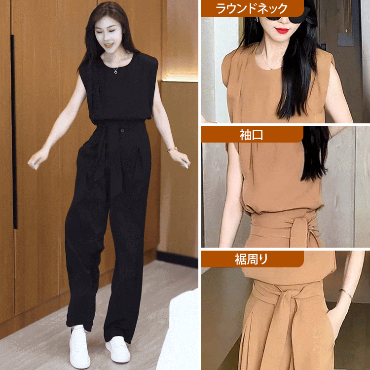 ファッショナブル ファッション ノースリーブ ラウンドネック Tシャツ カジュアルパンツ ボウタイ 無地 2点セット 大人カジュアル fashion ootd 夏コーデ ファッション coordinateコーディネート 夏服 カジュアルコーデ 今日のコーデ 大人コーデ レディースGF5694