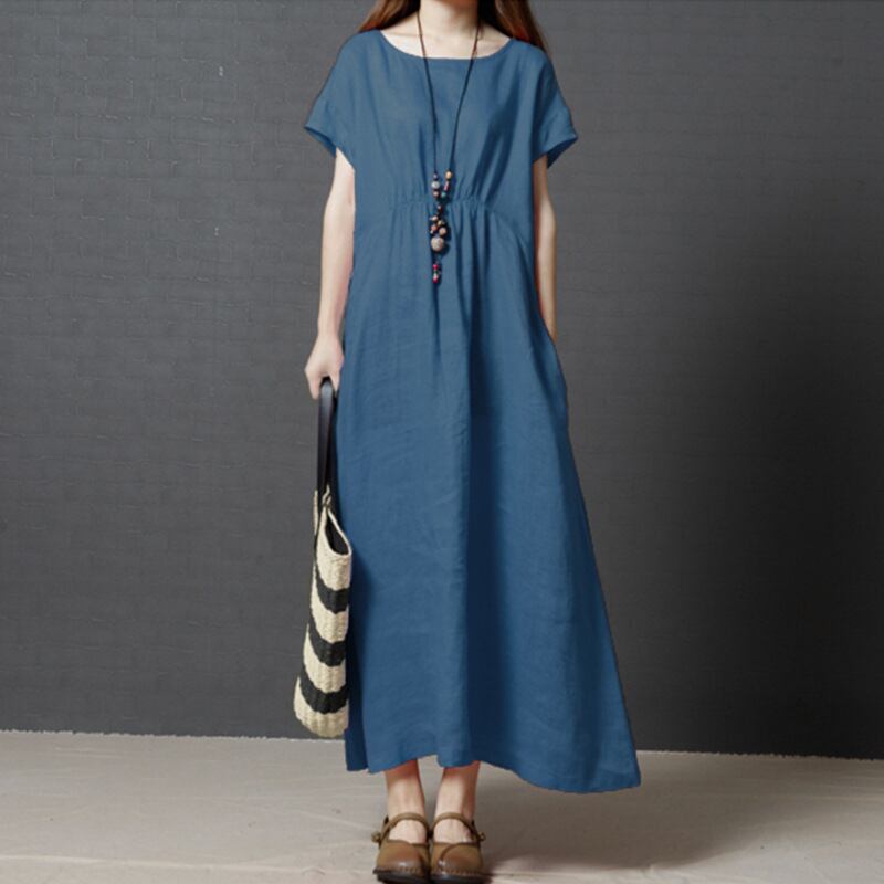 定番シンプル Aライン レトロ 半袖 着痩せ効果 ラウンドネック 体型をカバー ギャザー 無地 カジュアルワンピース 大人カジュアル fashion ootd 夏コーデ ファッション coordinateコーディネート 夏服 カジュアルコーデ 今日のコーデ 大人コーデ レディースGF6706