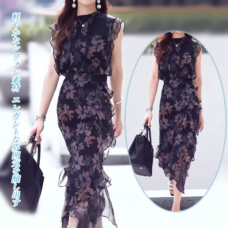人気上昇中 フェミニン フリル袖 ラウンドネック Tシャツ スカート 花柄 2点セット 大人カジュアル fashion ootd 夏コーデ ファッション coordinateコーディネート 夏服 カジュアルコーデ 今日のコーデ 大人コーデ レディースGF6711