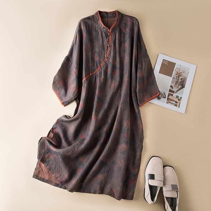 美人度アップ 森ガール 切り替え カジュアル 七分袖 スタンドネック 花柄ワンピース 大人カジュアル fashion ootd 夏コーデ ファッション coordinateコーディネート 夏服 カジュアルコーデ 今日のコーデ 大人コーデ レディースGF6700