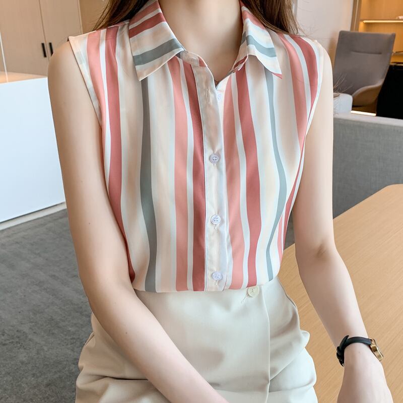 高見えデザイン ノースリーブ 通勤/OL シングルブレスト ストライプ柄 シャツ 大人カジュアル fashion ootd 夏コーデ ファッション coordinateコーディネート 夏服 カジュアルコーデ 今日のコーデ 大人コーデ レディースGF5730