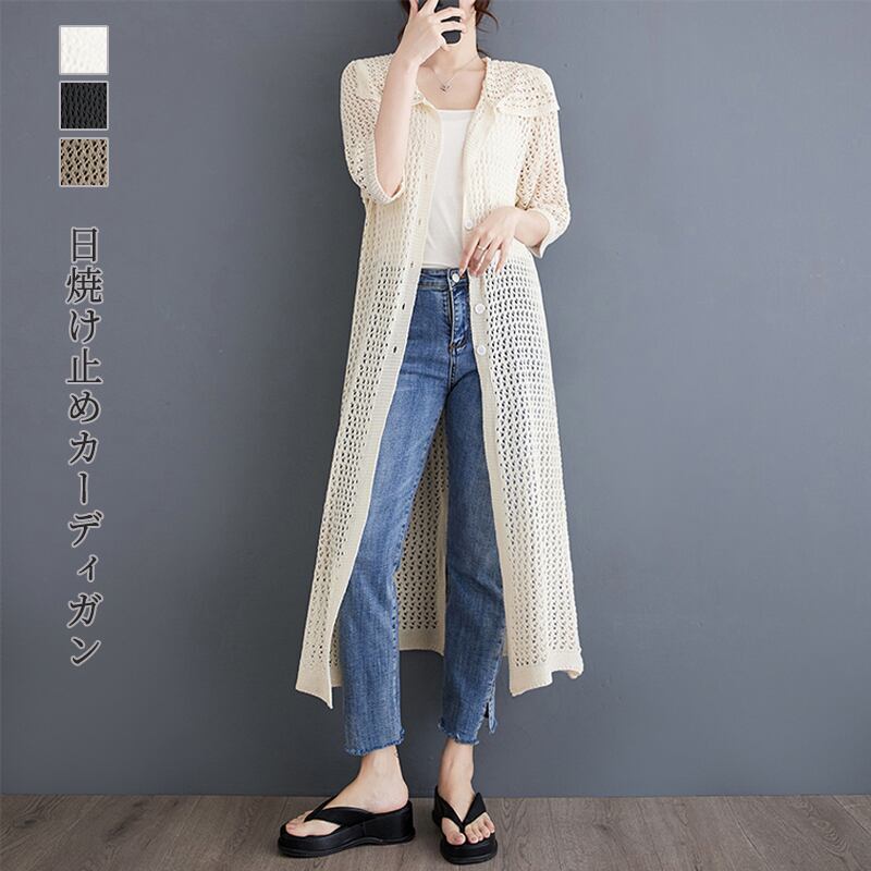 人気高い シングルブレスト 折り襟 無地 五分袖 透かし編み 日焼け止め服 大人カジュアル fashion ootd 夏コーデ ファッション coordinateコーディネート 夏服 カジュアルコーデ 今日のコーデ 大人コーデ レディースGF6786