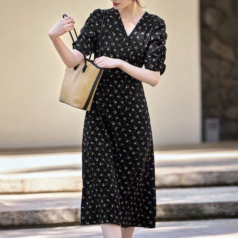 レトロ Aライン Vネック スウィート 半袖 エレガント 花柄ワンピース 大人カジュアル fashion ootd 夏コーデ ファッション coordinateコーディネート 夏服 カジュアルコーデ 今日のコーデ 大人コーデ レディースGF6795
