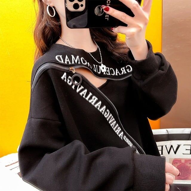デザイン感 ラウンドネック アルファベット チャーミング スウェット パーカーGF2086