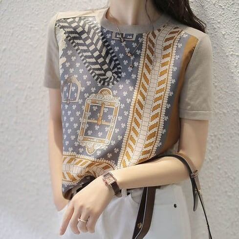 好評発売中 ラウンドネック プリント 半袖 ニット ブラウス 大人カジュアル fashion ootd 夏コーデ ファッション coordinateコーディネート 夏服 カジュアルコーデ 今日のコーデ 大人コーデ レディースGF5846