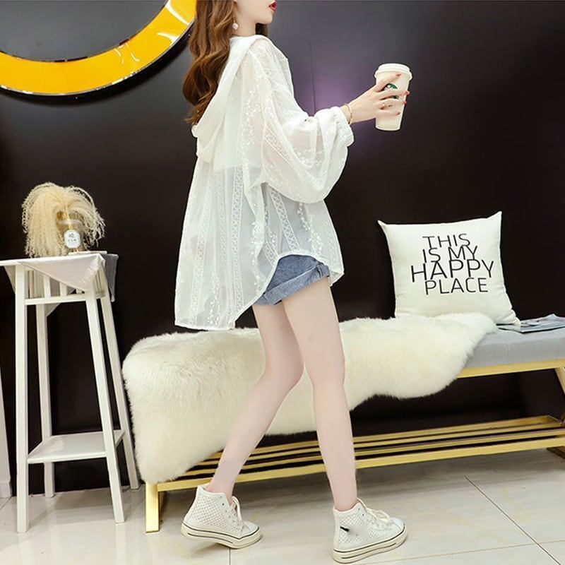 美人度アップ 日焼け対策 冷房対策 透け感 UVカット フード付き パーカーGF2101