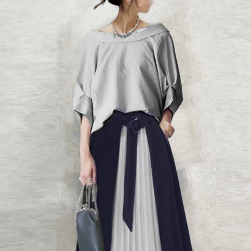 上品さたっぷり エレガント 五分袖 オフショルダー ブラウス スカート 切り替え 配色 2点セット 大人カジュアル fashion ootd 夏コーデ ファッション coordinateコーディネート 夏服 カジュアルコーデ 今日のコーデ 大人コーデ レディースGF5861