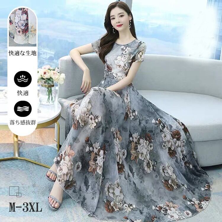 一枚で視線を奪う フェミニン 半袖 ラウンドネック プリントワンピース 大人カジュアル fashion ootd 夏コーデ ファッション coordinateコーディネート 夏服 カジュアルコーデ 今日のコーデ 大人コーデ レディースGF7009
