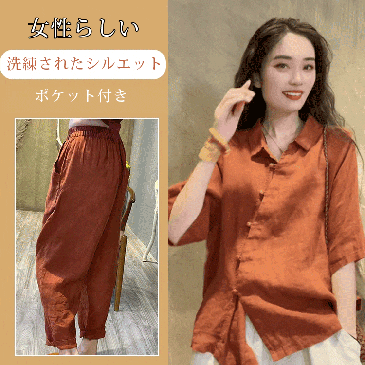 人気を獲得 エスニック系 五分袖 折り襟 Tシャツ カジュアルパンツ 無地 2点セット 大人カジュアル fashion ootd 夏コーデ ファッション coordinateコーディネート 夏服 カジュアルコーデ 今日のコーデ 大人コーデ レディースGF5888