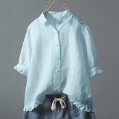 流行の予感 シンプル 無地 シングルブレスト フリル袖 シャツ 大人カジュアル fashion ootd 夏コーデ ファッション coordinateコーディネート 夏服 カジュアルコーデ 今日のコーデ 大人コーデ レディースGF7061