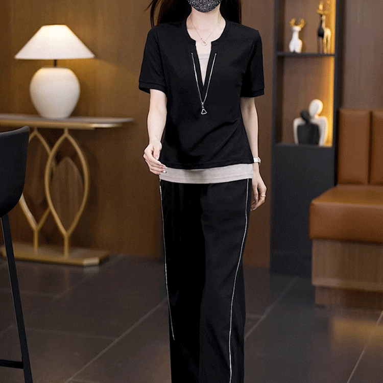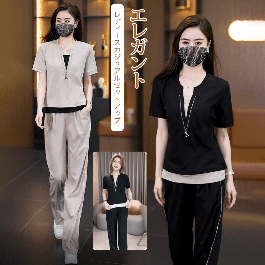 欠かせない シンプル 配色 半袖 Tシャツ カジュアルパンツ 無地 2点セット 大人カジュアル fashion ootd 夏コーデ ファッション coordinateコーディネート 夏服 カジュアルコーデ 今日のコーデ 大人コーデ レディースGF5889