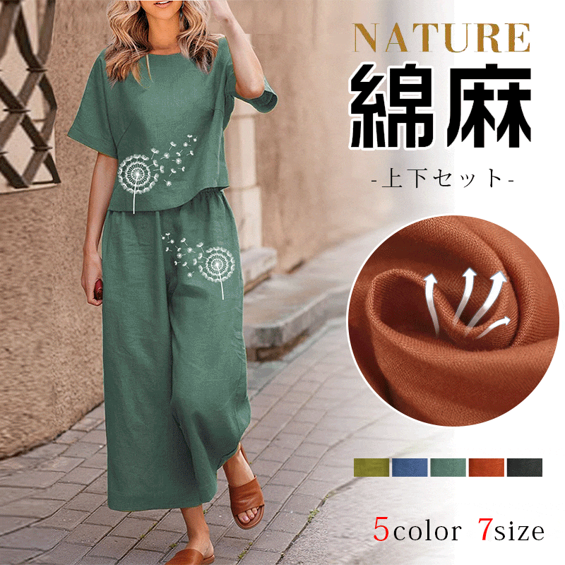 着回し力抜群 カジュアル ラウンドネック 半袖 Tシャツ カジュアルパンツ プリント 2点セット 大人カジュアル fashion ootd 夏コーデ ファッション coordinateコーディネート 夏服 カジュアルコーデ 今日のコーデ 大人コーデ レディースGF7097