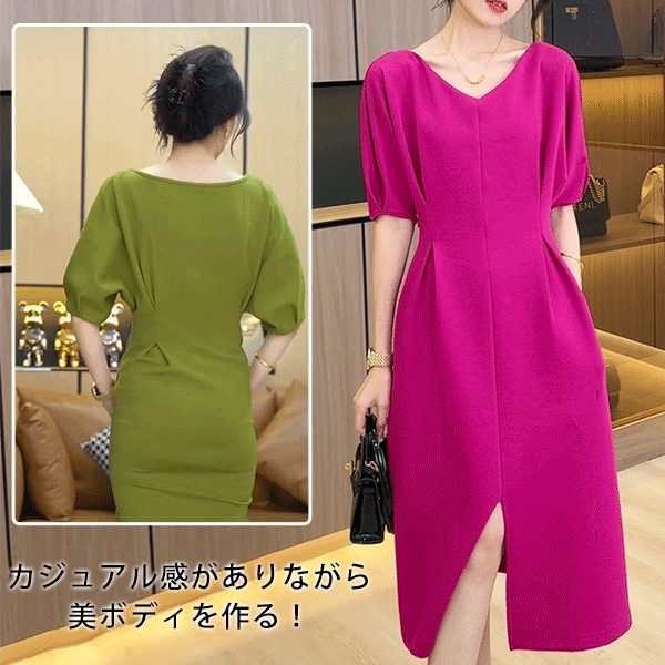 おしゃれ度高め シンプル 無地 半袖 Vネック カジュアルワンピース 大人カジュアル fashion ootd 夏コーデ ファッション coordinateコーディネート 夏服 カジュアルコーデ 今日のコーデ 大人コーデ レディースGF7120
