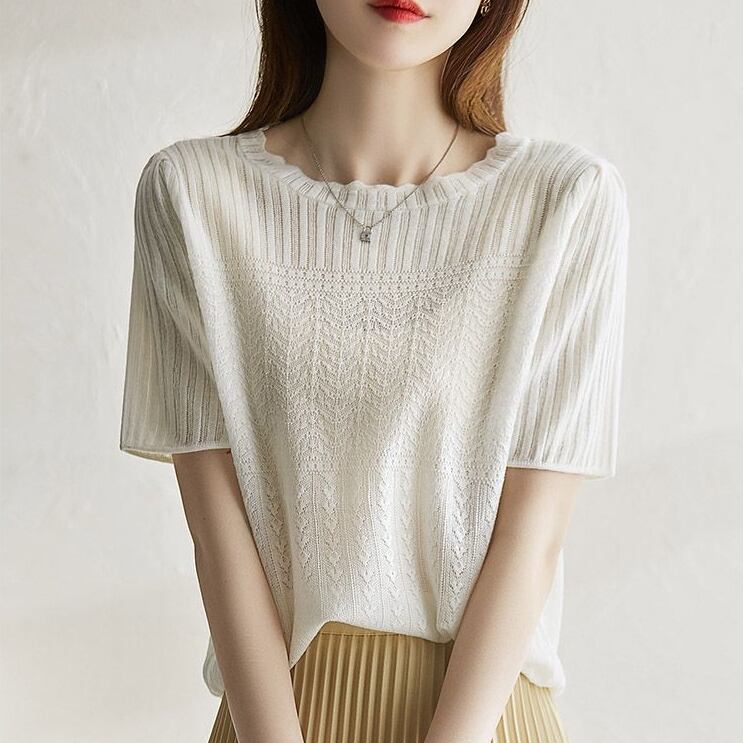 上品なシルエット 無地 伸縮性あり 半袖 Tシャツ 大人カジュアル fashion ootd 夏コーデ ファッション coordinateコーディネート 夏服 カジュアルコーデ 今日のコーデ 大人コーデ レディースGF7142