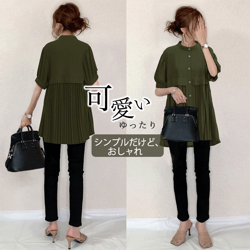 デザイン性抜群 シンプル 半袖 ギャザー 無地 ブラウス 大人カジュアル fashion ootd 夏コーデ ファッション coordinateコーディネート 夏服 カジュアルコーデ 今日のコーデ 大人コーデ レディースGF5961