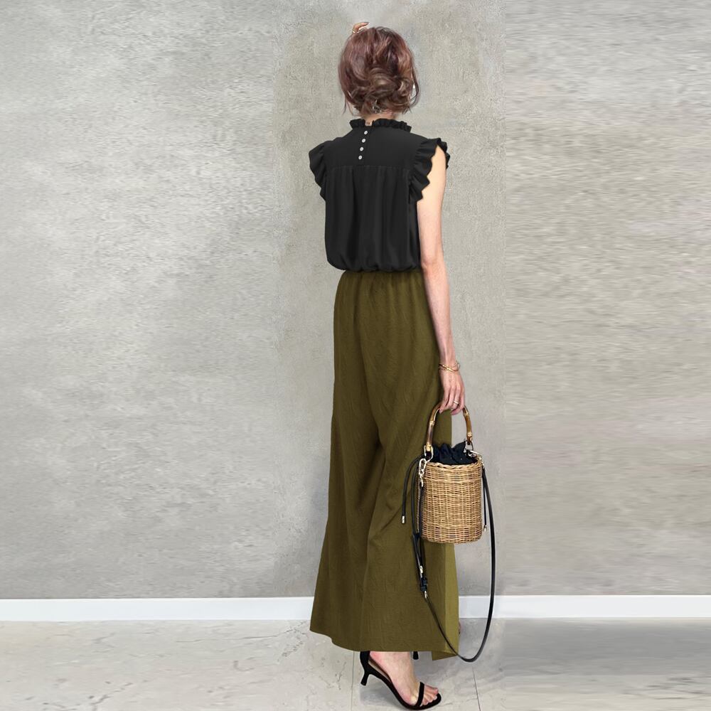 買わなきゃ損 フェミニン フリル袖 ギャザー Tシャツ カジュアルパンツ プリーツ 配色 2点セット 大人カジュアル fashion ootd 夏コーデ ファッション coordinateコーディネート 夏服 カジュアルコーデ 今日のコーデ 大人コーデ レディースGF5965