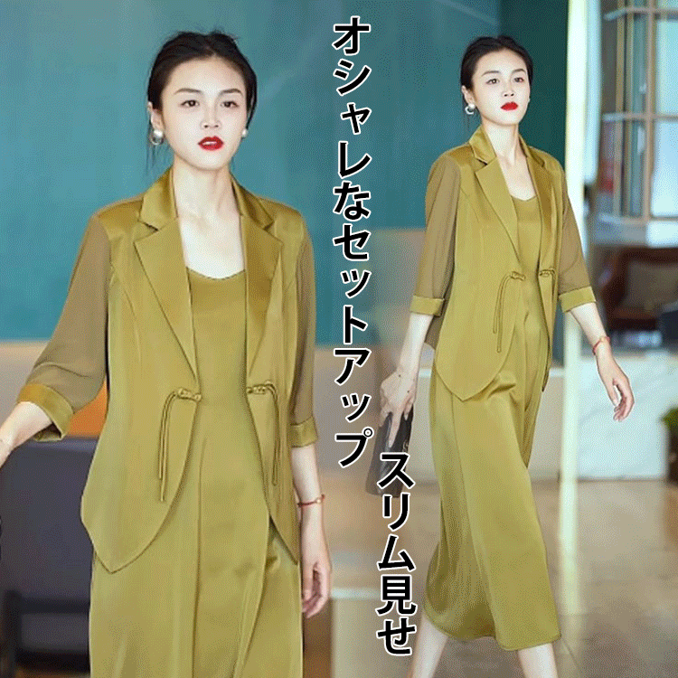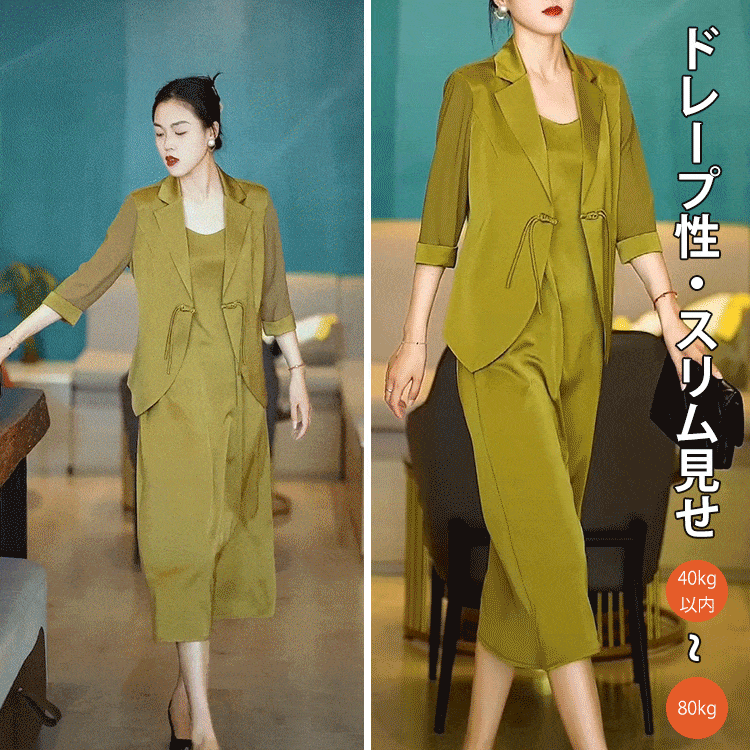 存在感抜群 シンプル 折り襟 七分袖 カーディガン ジャンパースカート 無地 2点セット 大人カジュアル fashion ootd 夏コーデ ファッション coordinateコーディネート 夏服 カジュアルコーデ 今日のコーデ 大人コーデ レディースGF7197