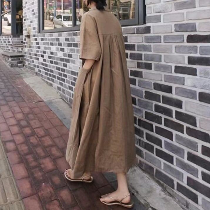 上品さたっぷり 無地 ギャザー 五分袖 Aライン 大きめのサイズ感 折り襟 カジュアルワンピース 大人カジュアル fashion ootd 夏コーデ ファッション coordinateコーディネート 夏服 カジュアルコーデ 今日のコーデ 大人コーデ レディースGF7268