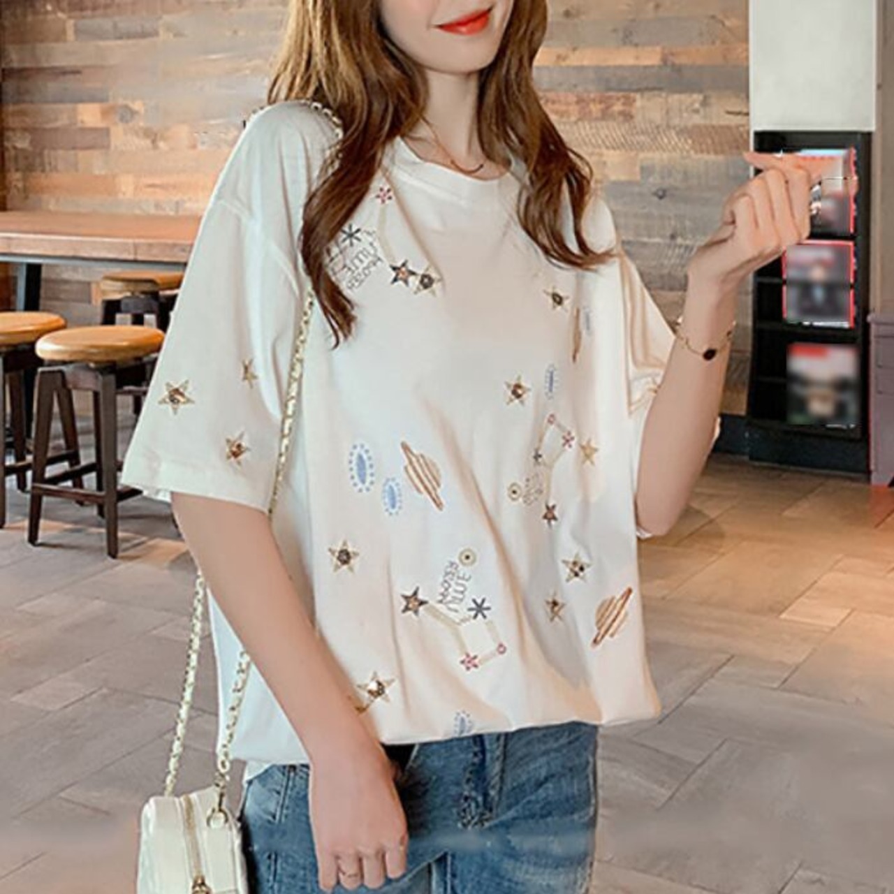 上品な可愛さ カジュアル 五分袖 プリント Tシャツ 大人カジュアル fashion ootd 夏コーデ ファッション coordinateコーディネート 夏服 カジュアルコーデ 今日のコーデ 大人コーデ レディースGF7273
