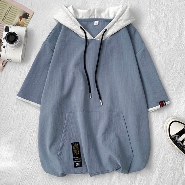 好感度UP カジュアル 混色 フード付き 半袖 パーカー 大人カジュアル fashion ootd 夏コーデ ファッション coordinateコーディネート 夏服 カジュアルコーデ 今日のコーデ 大人コーデ レディースGF6026
