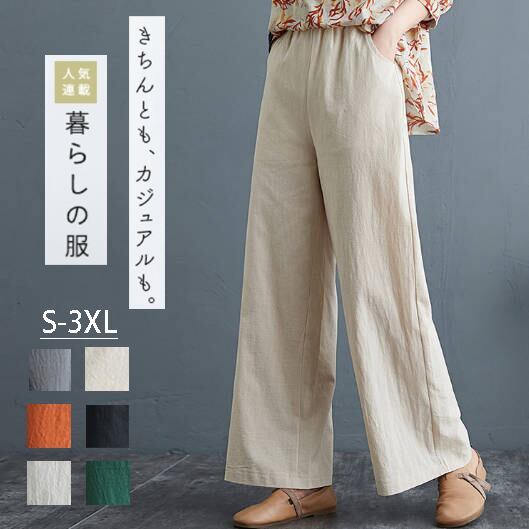 6カラー展開 肌触りよく 森ガール ハイウエスト 体型カバー 無地 カジュアルパンツ 大人カジュアル fashion ootd 夏コーデ ファッション coordinateコーディネート 夏服 カジュアルコーデ 今日のコーデ 大人コーデ レディースGF7316