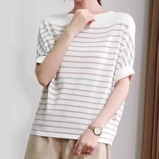 3カラー展開 ナチュラル カジュアル ドルマンスリーブプリント ボーダー 半袖 Tシャツ 大人カジュアル fashion ootd 夏コーデ ファッション coordinateコーディネート 夏服 カジュアルコーデ 今日のコーデ 大人コーデ レディースGF7320