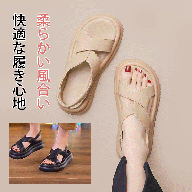 柔軟性に優れた カジュアル 厚底 ワンシェイプバックル 丸トゥ サンダル 大人カジュアル fashion ootd 夏コーデ ファッション coordinateコーディネート 夏服 カジュアルコーデ 今日のコーデ 大人コーデ レディースGF7365