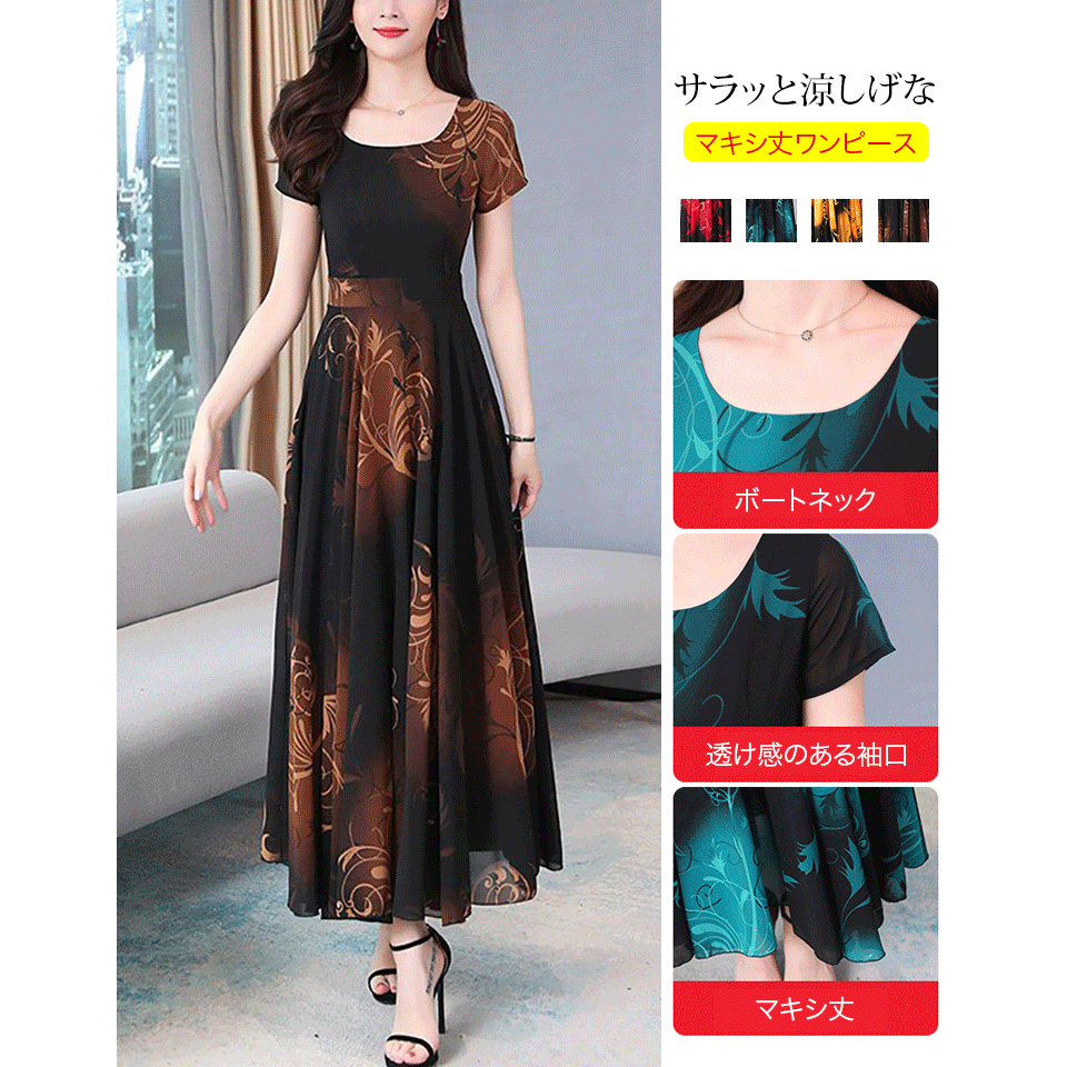 デザイン性抜群 ラウンドネック グラデーション色 半袖 プリントワンピース 大人カジュアル fashion ootd 夏コーデ ファッション coordinateコーディネート 夏服 カジュアルコーデ 今日のコーデ 大人コーデ レディースGF7368