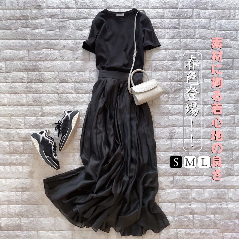 上品さたっぷり シンプル ラウンドネック 半袖 Tシャツ スカート 無地 ギャザー 2点セット 大人カジュアル fashion ootd 夏コーデ ファッション coordinateコーディネート 夏服 カジュアルコーデ 今日のコーデ 大人コーデ レディースGF7421