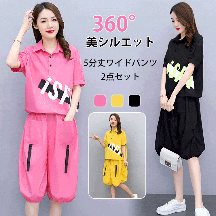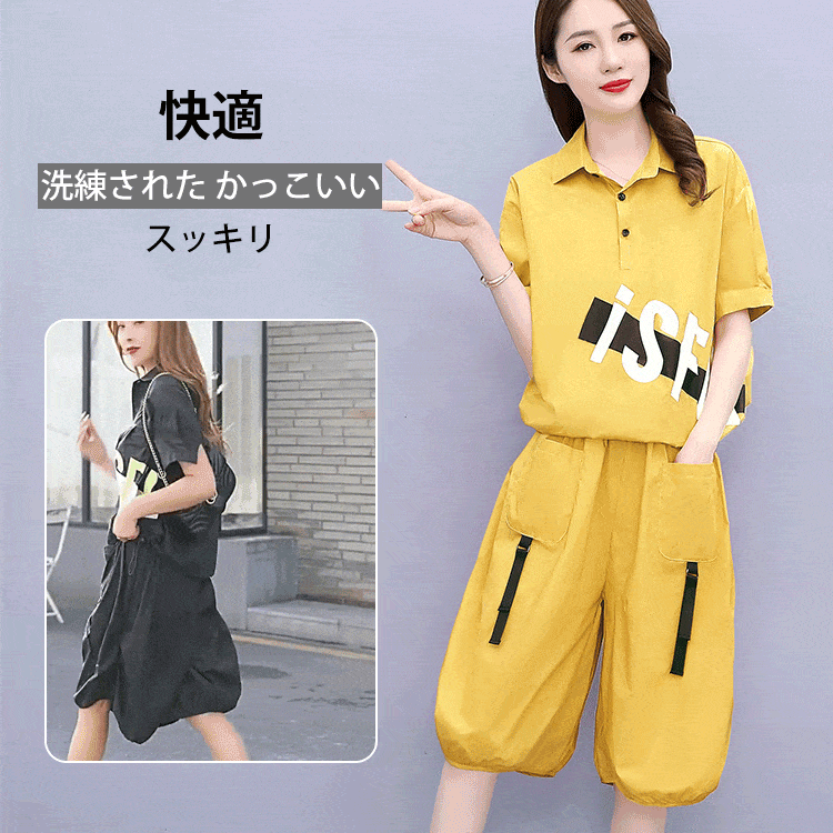 好感度UP カジュアル アルファベット 折り襟 Tシャツ カジュアルパンツ 無地 2点セット 大人カジュアル fashion ootd 夏コーデ ファッション coordinateコーディネート 夏服 カジュアルコーデ 今日のコーデ 大人コーデ レディースGF6101