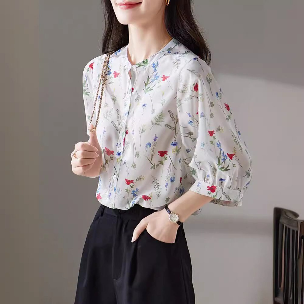 流行の予感 シンプル プリント シングルブレスト ランタンスリーブ シャツ 大人カジュアル fashion ootd 夏コーデ ファッション coordinateコーディネート 夏服 カジュアルコーデ 今日のコーデ 大人コーデ レディースGF6130