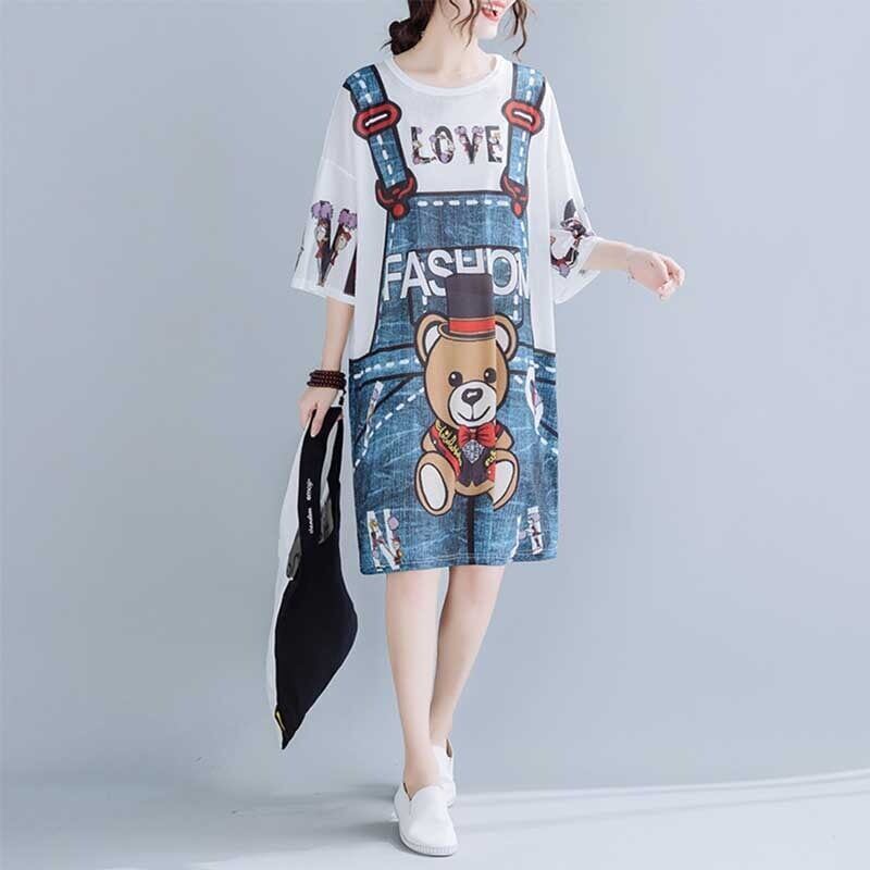 旅行Tシャツ 夏 レディース 膝丈 プリント 大きいサイズ ゆったりさらっと涼しいGF2320