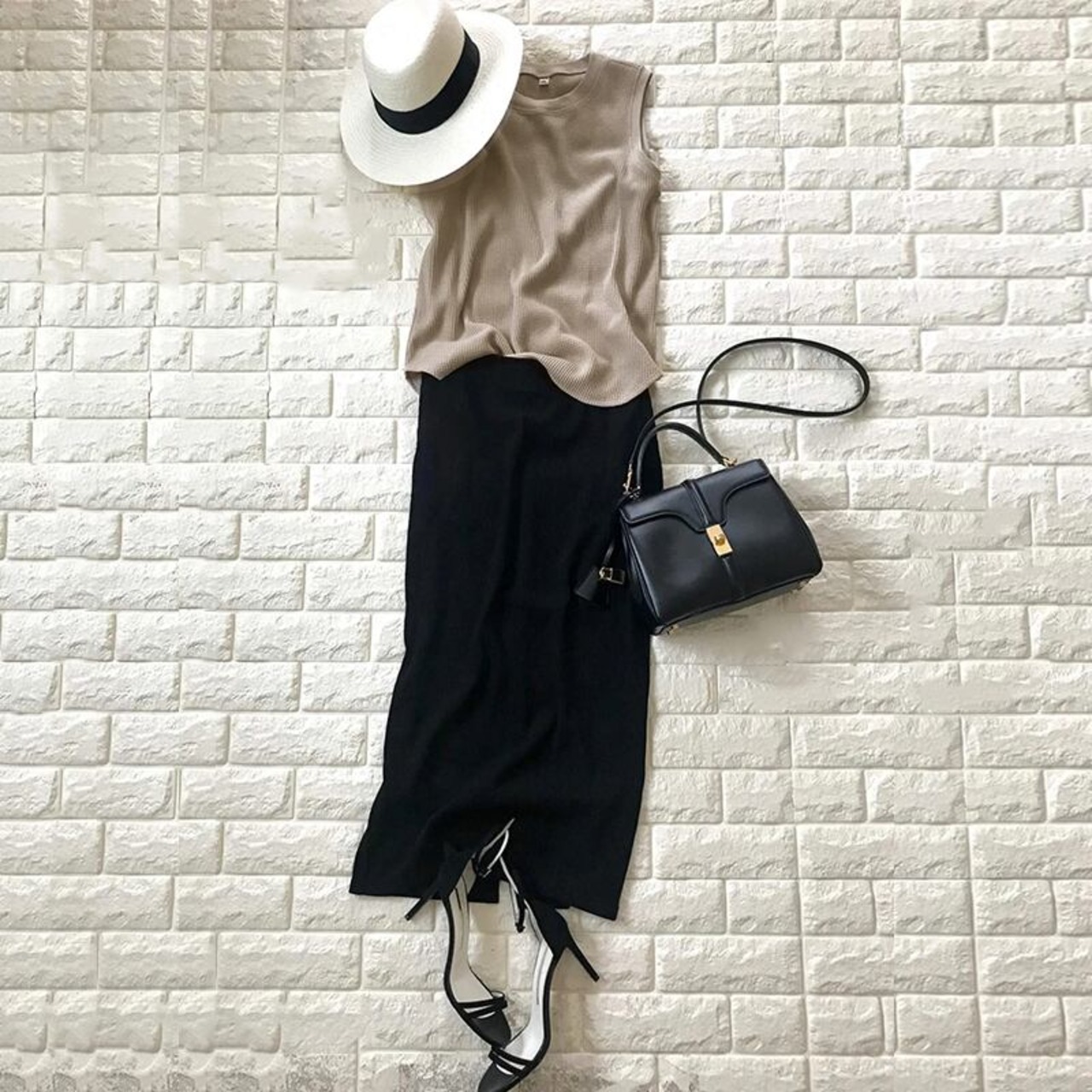 絶対欲しい シンプル 無地 ノースリーブ Tシャツ+ きれいめ系 スカート 2点セット 大人カジュアル fashion ootd 夏コーデ ファッション coordinateコーディネート 夏服 カジュアルコーデ 今日のコーデ 大人コーデ レディースGF6147