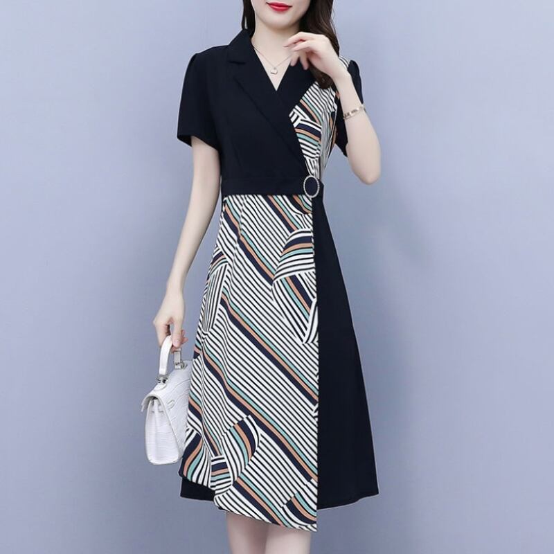 高見えデザイン フェミニン ハイウエスト Aライン 通勤/OL 配色 半袖 エレガントワンピース 大人カジュアル fashion ootd 夏コーデ ファッション coordinateコーディネート 夏服 カジュアルコーデ 今日のコーデ 大人コーデ レディースGF6156