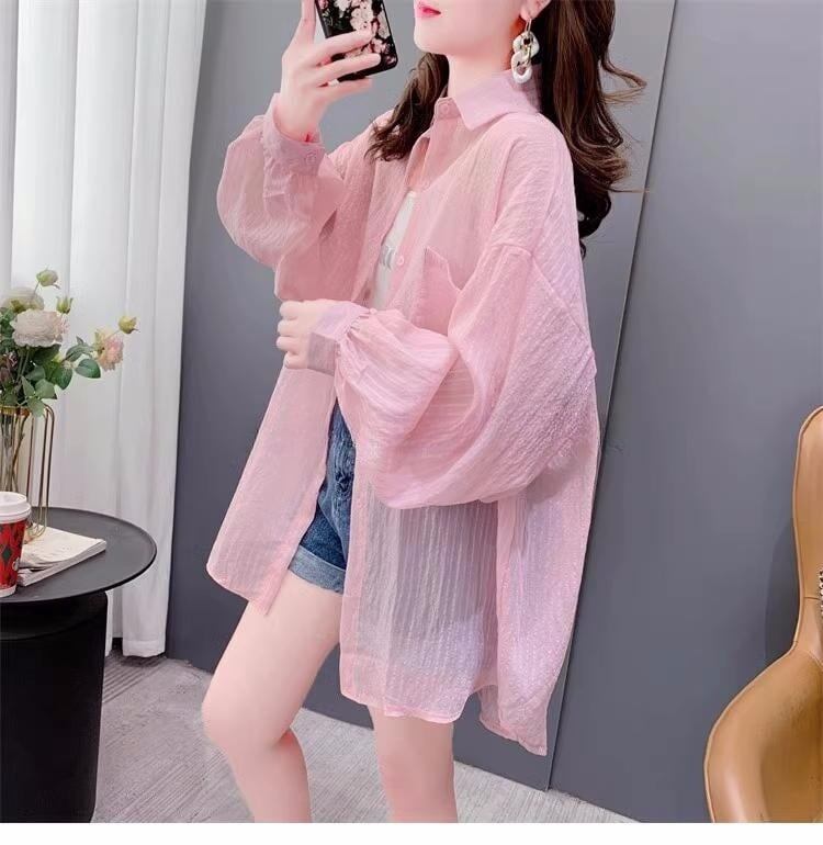 UVカット夏 薄手 長袖 透け感 日焼け止め ゆったり シャツGF2344